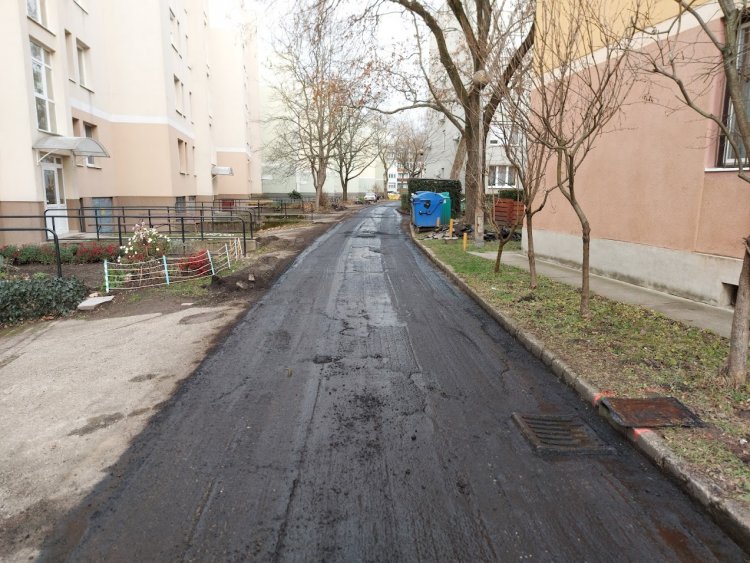 Aszfaltozási munkálatokat végeznek a Tompa Mihály utcán