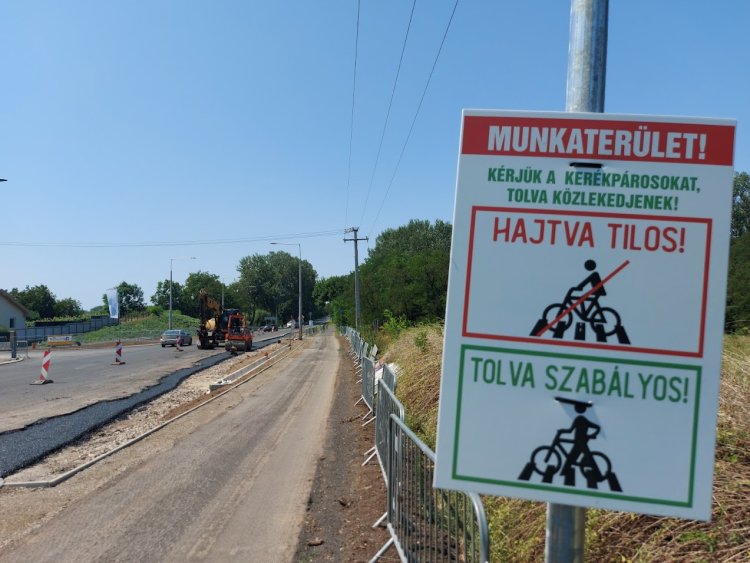 A közúti forgalmat jelzőőrök irányítják váltakozó irányban. A kerékpárforgalmat is korlátozták, tábla jelzi, hogy az érintett szakaszon csak a biciklit tolva szabályos a közlekedés.
