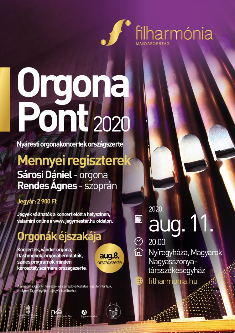 A Filharmónia Magyarország 2019-ben, hagyományteremtő szándékkal hívta életre az Orgonák éjszakája névre keresztelt rendezvényét, mely új megvilágításba helyezte az orgonát. Idén augusztus 8-án újra megtelnek a templomok, a terek, különleges helyszínek a hangszerek királynőjének csodálatos hangjával. Nyíregyházán este 9 órától a Magyarok Nagyasszonya-társszékesegyházban Elek Péter orgonál. Augusztus 11-én 20 órától pedig, szintén a Magyarok Nagyasszonya-társszékesegyházban, Mennyei regiszterek címmel Sárosi Dániel orgonajátékát élvezheti a közönség. Közreműködik: Rendes Ágnes - szoprán