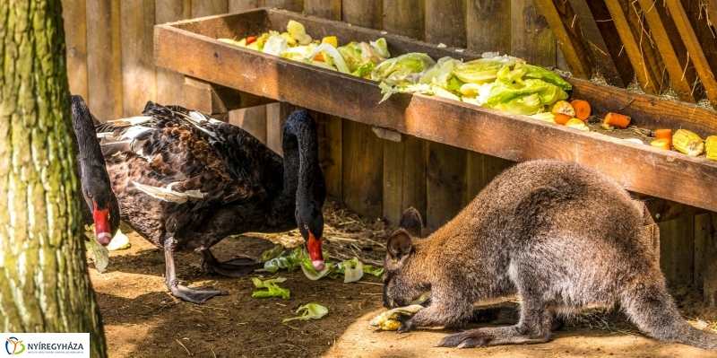 Nyugat-Ausztrália címer állatai a fekete hattyúk, valamint a tyúkludak és a benett-kenguruk így most már közös, társas kifutóban tekinthetők meg a Nyíregyházi Állatparkban. A társbérletet mindhárom faj előszeretettel használja.
