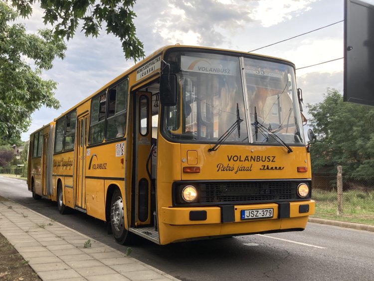 Az ünnepi időszakra feldíszített, magaspadlós Ikarus 280.02 típusú, Volánbusz Zrt. utolsó közforgalmú harmonika ajtós autóbusza december 4-én, 6-án, 11-én, 18-án, 26-án, valamint 2023. január 1-jén közlekedik helyi menetrend szerinti járatokon.