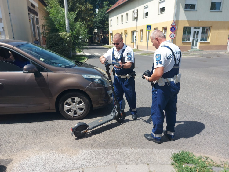 A roller a kocsi alá szorult, szerencsére a fiú megúszta karcolásokkal a kalandot. A rendőrség helyszínelt.
