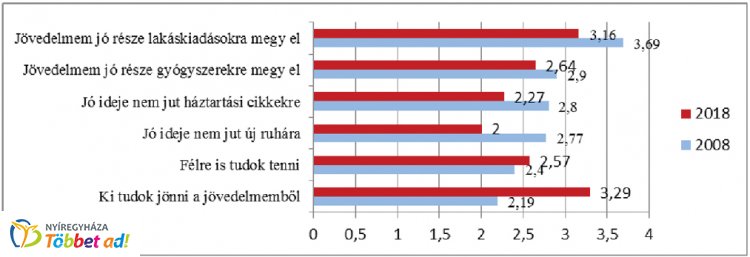 4. sz. ábra: Idősek megélhetéssel kapcsolatos vélekedéseinek átlagai ötfokozatú skálán 2008, 2018