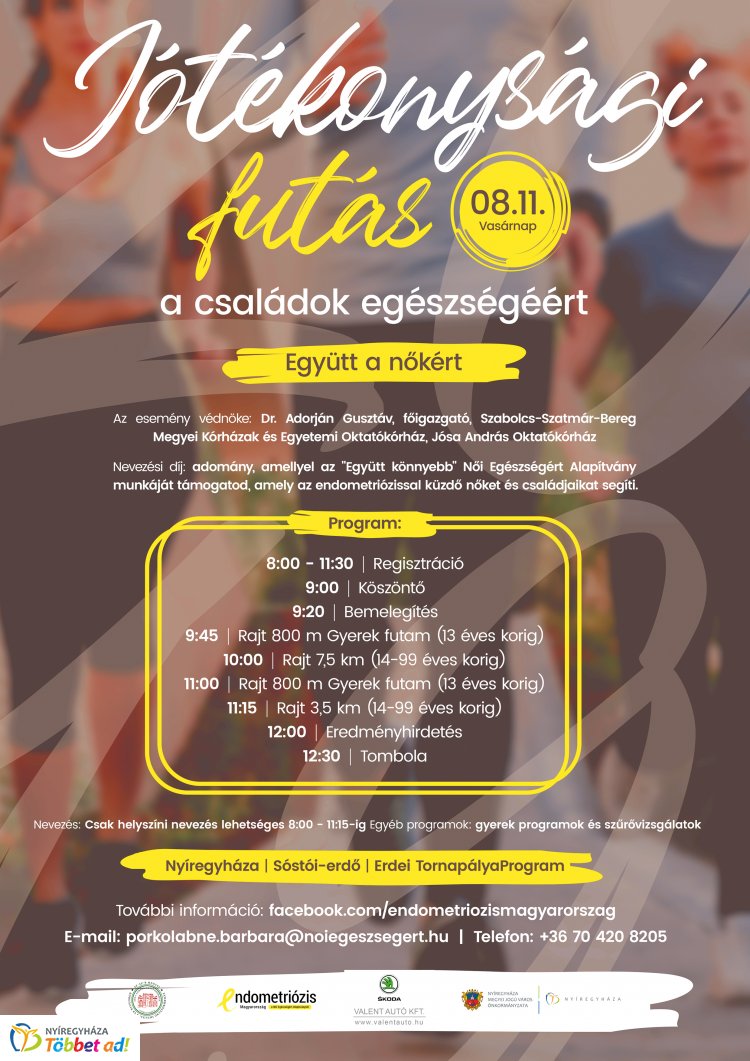 Az endometriózissal élő nők gyógyulásának támogatására szervez jótékonysági futást az „ Együtt könnyebb” Női Egészségért Alapítvány. A vasárnap délelőtt 10 órakor kezdődő rendezvény helyszíne a Sóstó Erdei Tornapálya.