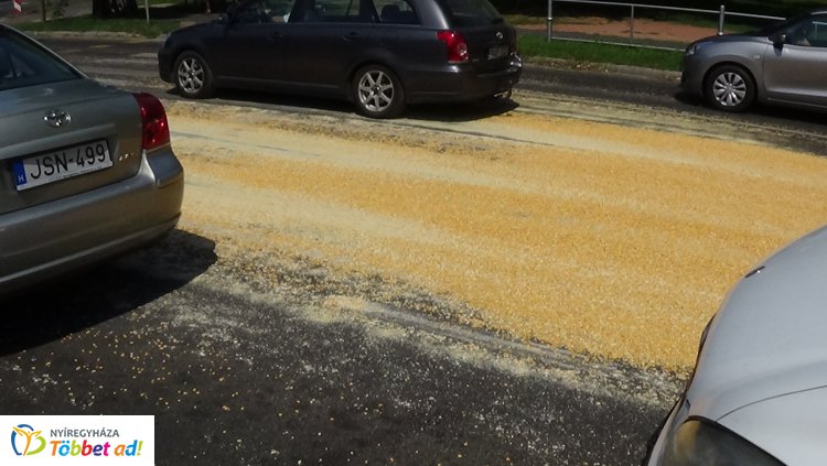 Az Erdősoron nagy mennyiségű szemes kukoricát hagyott el egy teherautó, de nem vette észre. Az utat a Magyar Közút munkatársai tisztították meg a balesetveszélyes szemektől.