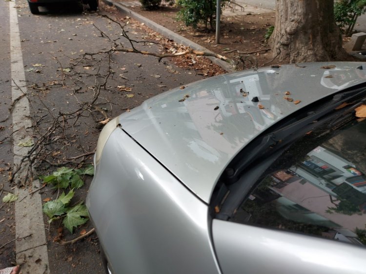 Az erős szél letört egy faágat, ami ráesett egy parkoló autóra a Vasvári Pál utcán