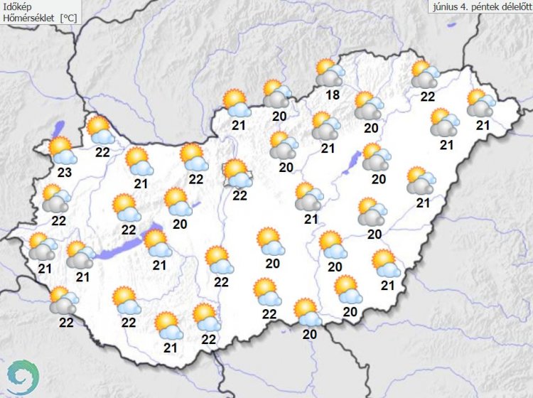 Így indul a nap: Magyarország várható időjárása 2021. június 4-én délelőtt. (Forrás: MET.hu)