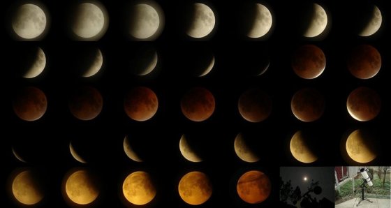 A 2008. február 21-i teljes holdfogyatkozás menete egy képen. Fotó: Pócsai Sándor