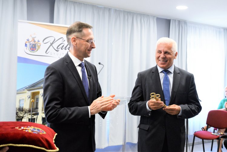 A teljesen felújított, átalakított Kállay-ház értékõrzés és kulturális attrakció is egyben. A képen az ünnepélyes avatáson a polgármester Varga Mihály pénzügyminiszterrel