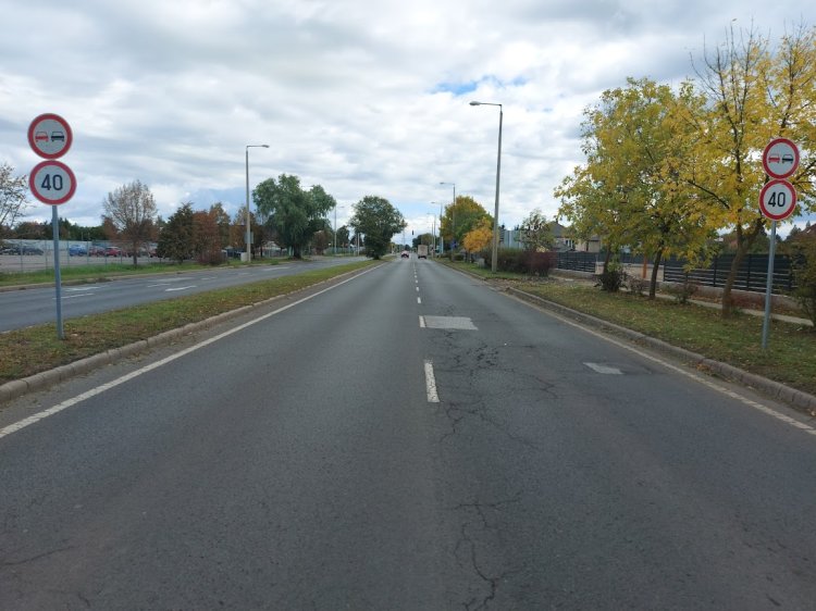 Az Orosi úton mindkét irányban útszűkület, sebességkorlátozás és előzni tilos van érvényben