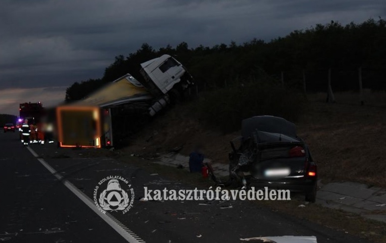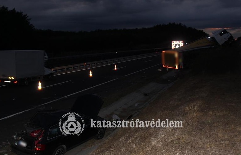 Egy műszaki cikkeket szállító kamion és egy személygépkocsi ütközött össze szombaton este az M3-as autópályán, a 249-es kilométernél, a Budapest felé vezető oldalon, Pócspetri közelében.