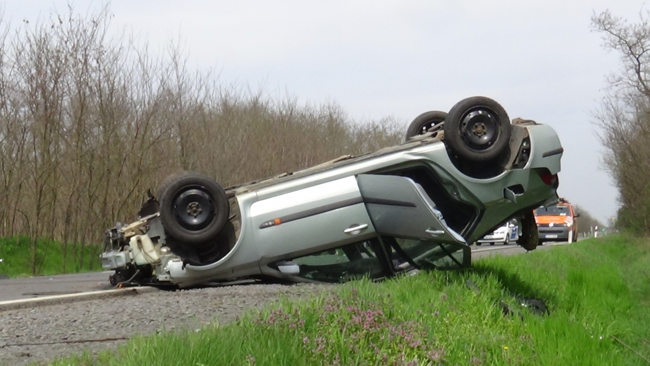 Az úttestről lesodródott és árokba borult egy személygépkocsi