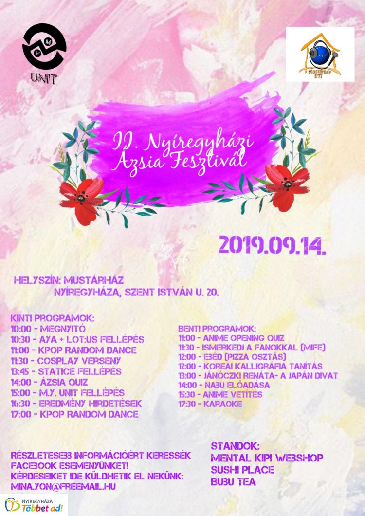 Második alkalommal szervezik meg a nyíregyházi Ázsia Fesztivált. A rendezvény ingyenes, a helyszín ismét a Mustárház (Nyíregyháza, Szent István utca 20.)! Az Ifjúsági Központ megannyi színes rendezvény otthona, ma sem lesz ez másként, hamarosan kezdődik a 'nagyonkeleti' programáradat. 10 órakor startol el az Ázsia Fesztivál. Tóth Amina a szervezőcsapat aktív tagja azt mondta: