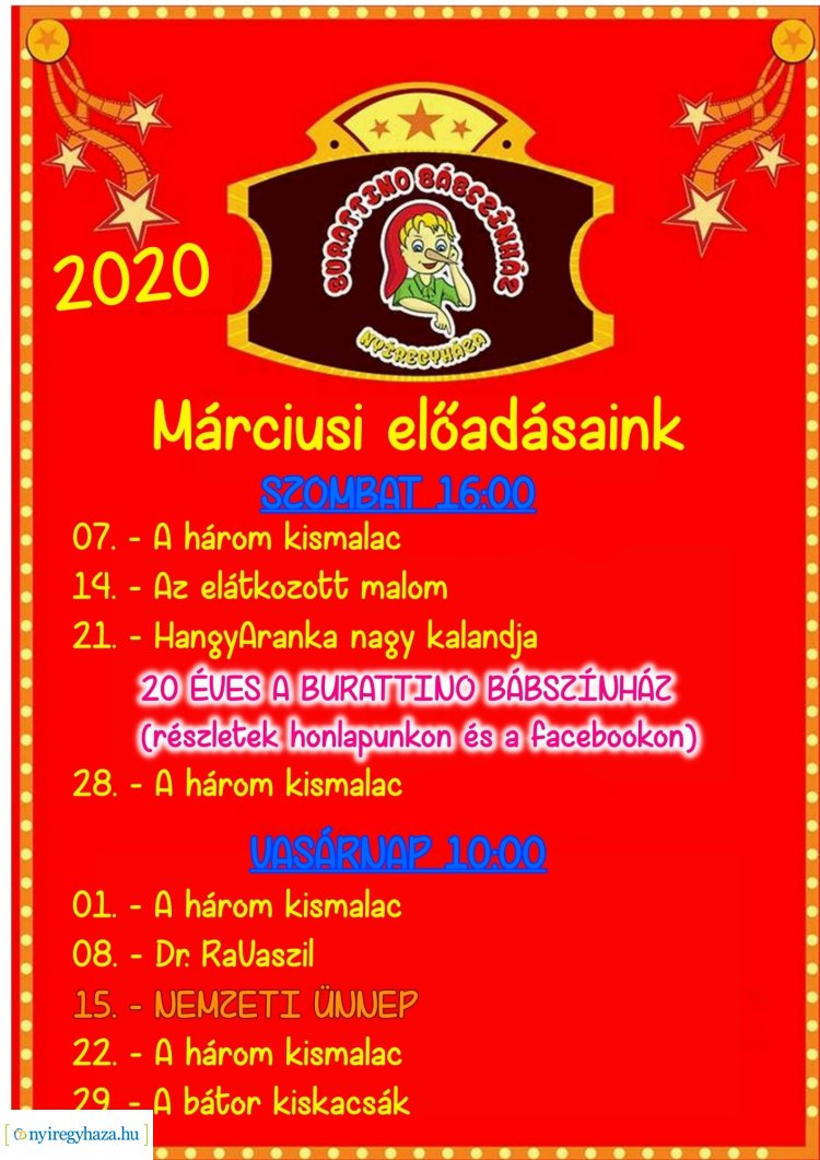 A 20 éves Burattino Bábszínház márciusban is várja előadásaira a családokat, minden hétvégén.