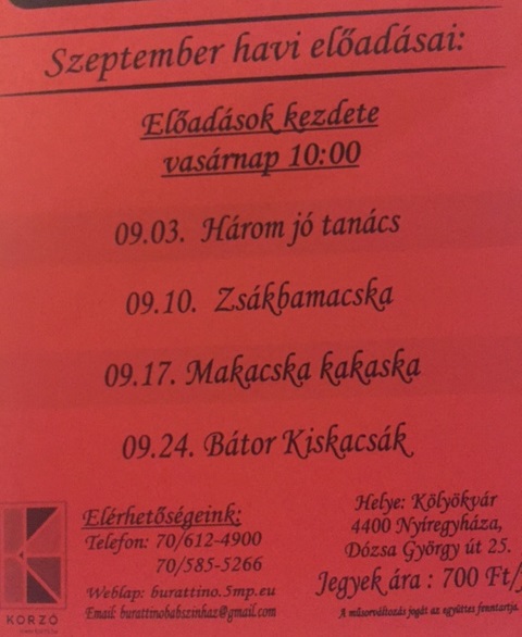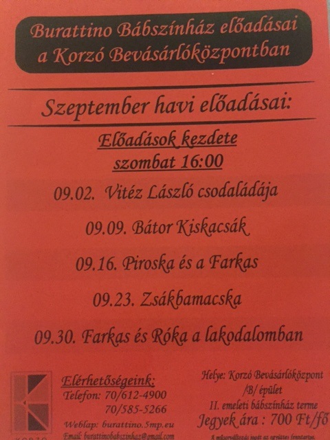 Bábszínházi előadások szeptemberben