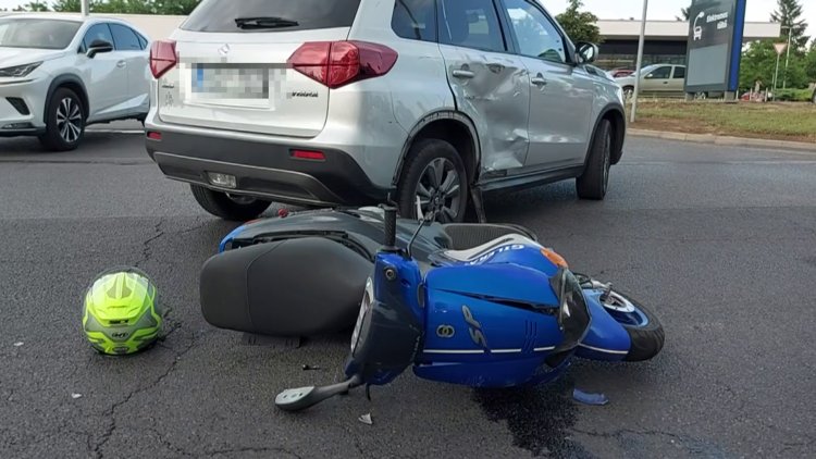 A 4-es Huszárok útján egy robogós és egy személygépkocsi ütközött.