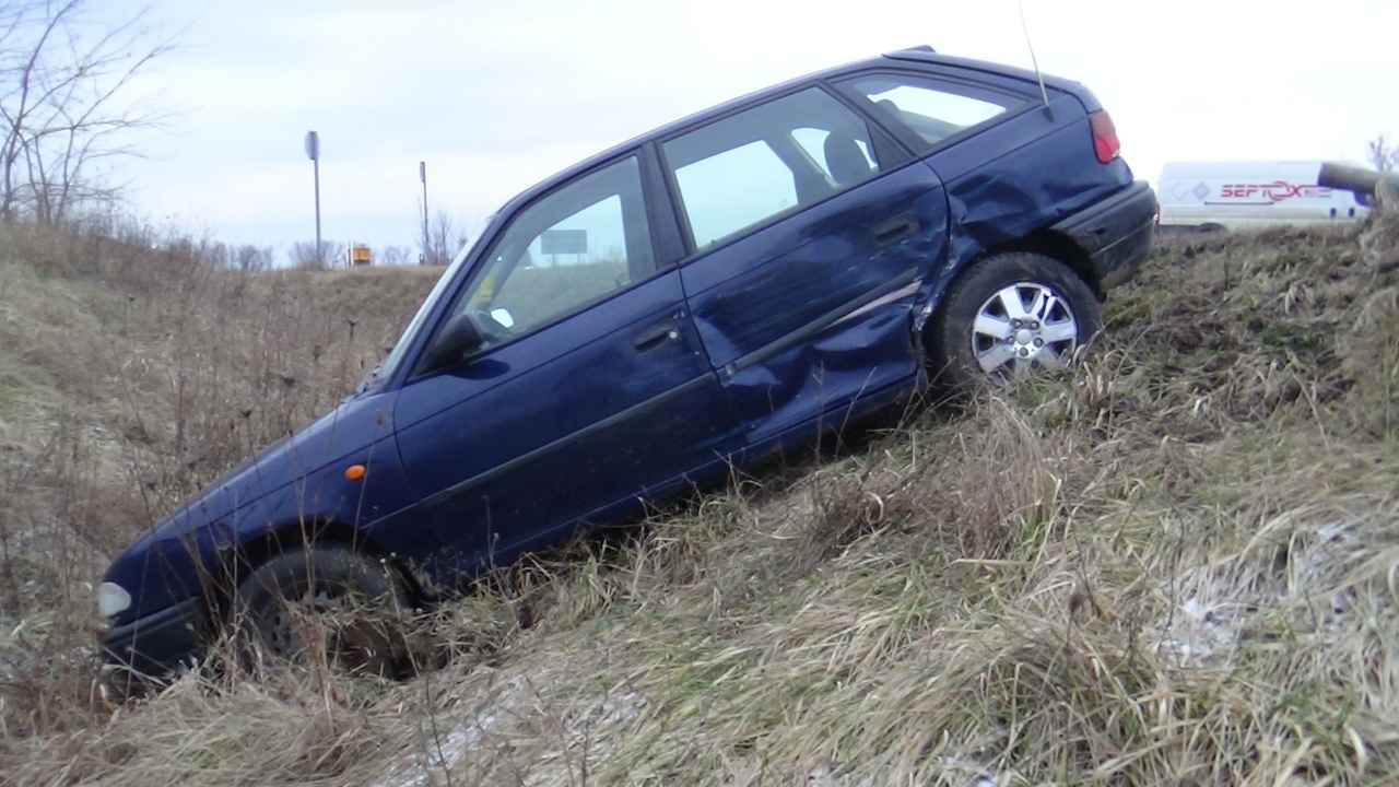 A vétlen jármű árokba csúszott. Személyi sérülés nem történt.