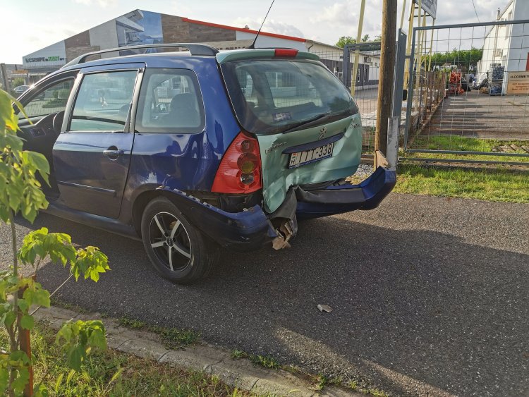 Baleset a 41-es számú főúton - Két autó csúszott egymásba, az egyik a járdára repült