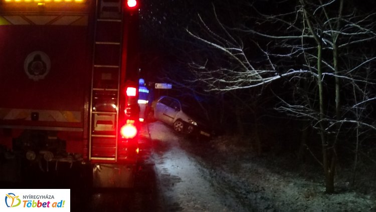 Baleset történt hétfő hajnalban a Simai úton, egy jármű árokba borult