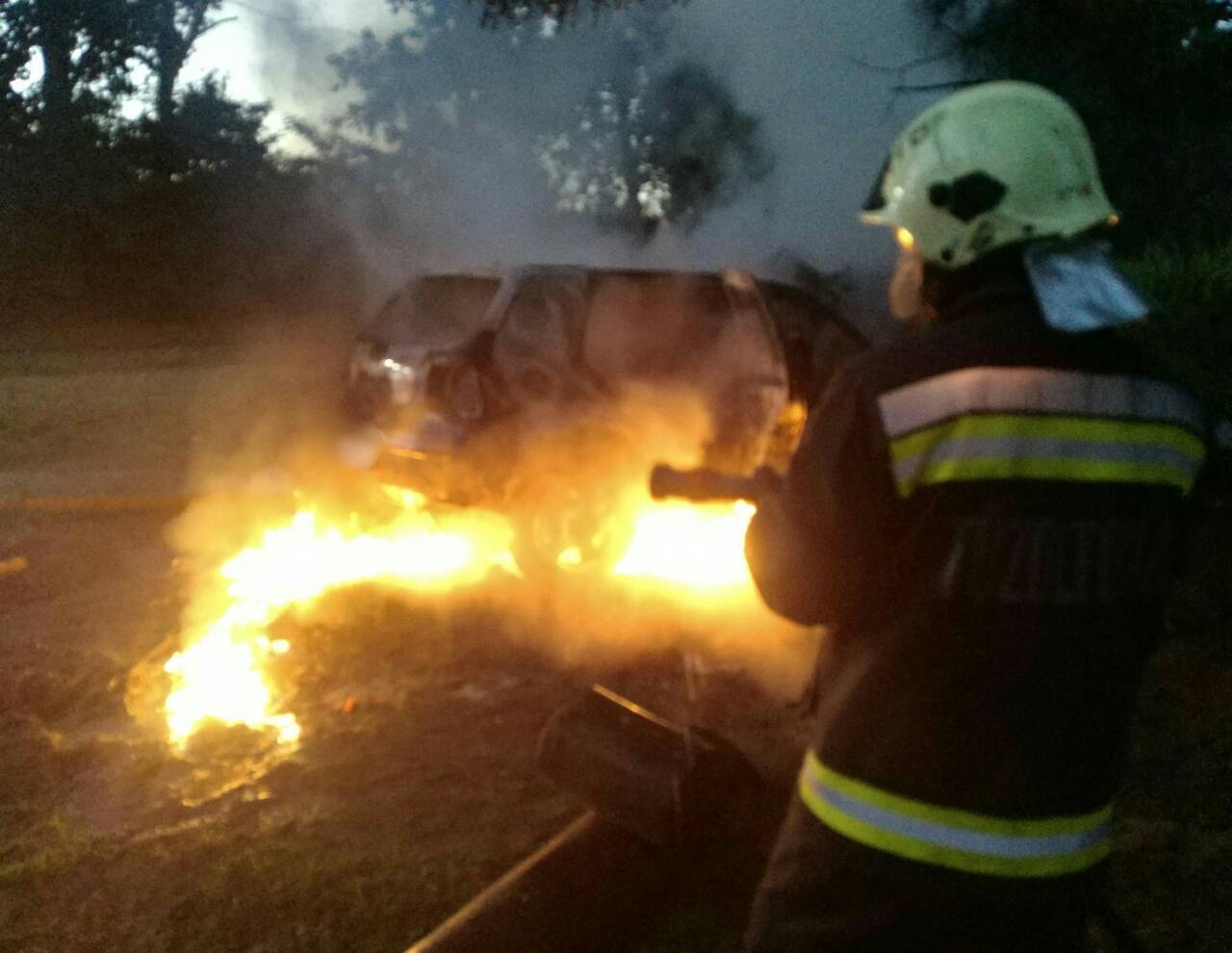 Baleset után kigyulladt egy személygépkocsi Nyíregyházától néhány kilométerre