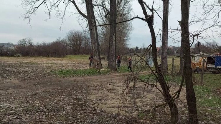 A Kollégium utcában kivágták az előre megjelölt, balesetveszélyes fákat egy pihenőpark melletti területen.