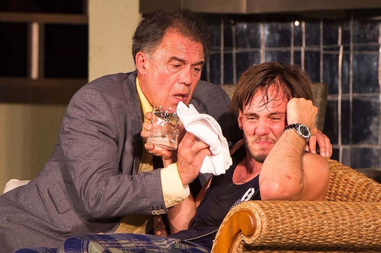 (Fotó: Pillanatkép a Balfácánt vacsorára! című darabból. A képen balról Gáspár Sándor)