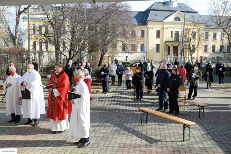 A koronavírus-világjárvány miatt, az egyházmegyei rendelkezéseknek megfelelően egyelőre szünetelnek a templomokban bemutatott szentmisék. Az új helyzethez igazodva ezért a római katolikus hívek a Magyarok Nagyasszonya-főplébánia udvarán ma és a kezdődő nagyhéten nyilvános, tábori szentmisén vehetnek részt.