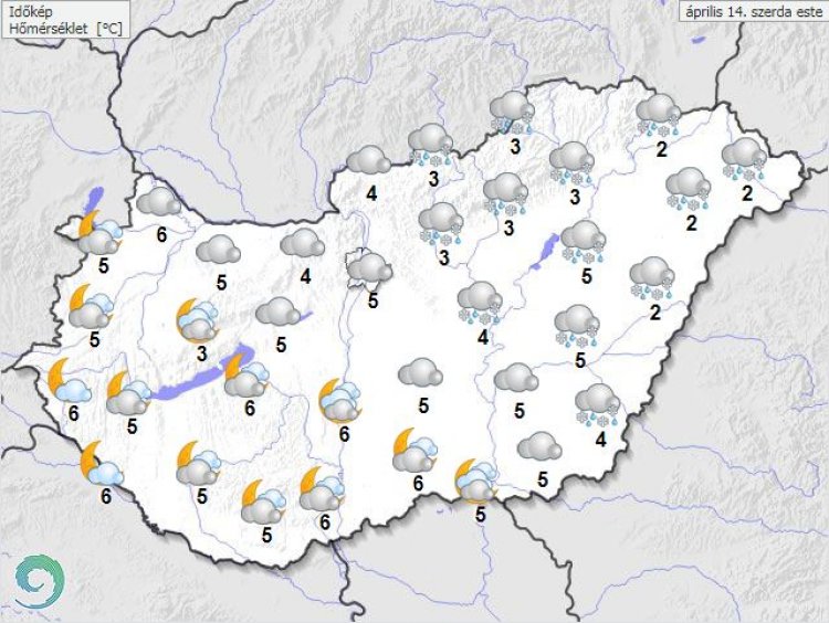 Este az ország nagyobb részén borult marad az ég, de a nyugati, délnyugati megyékben szakadozott lesz a felhőzet, akár derült időszakok is lehetnek. A Dunától keletre elszórtan vegyes halmazállapotú csapadék előfordulhat.
