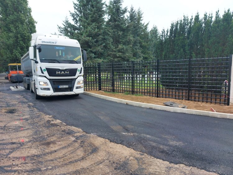 Kedd délutánra már elkészült a vadonatúj aszfaltréteg is. Rövidesen felfestik az útburkolati jeleket a forgalmas bejáratnál. A kivitelező azt ígéri, hogy a felújítás augusztus 16-ig elkészül.