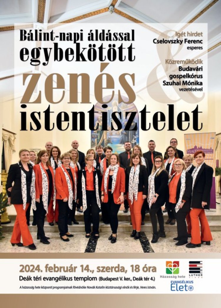 A 17 órától kezdődő zenés áhítat keretében hallható koncert címe: Békessége beragyog. A műsorban a böjti időszakhoz illeszkedő énekszámok hangzanak fel, a gospel és a worship műfajának különleges hangzásvilágában.