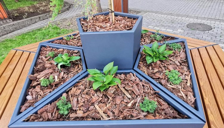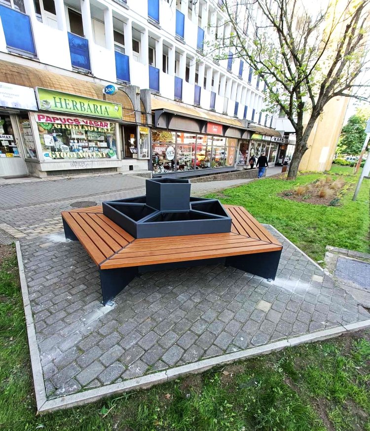 A különleges utcabútor virágládáit is beülették, ahol többféle évelő növény és egy európai csüngő vörösfenyő is hekyet kapott.