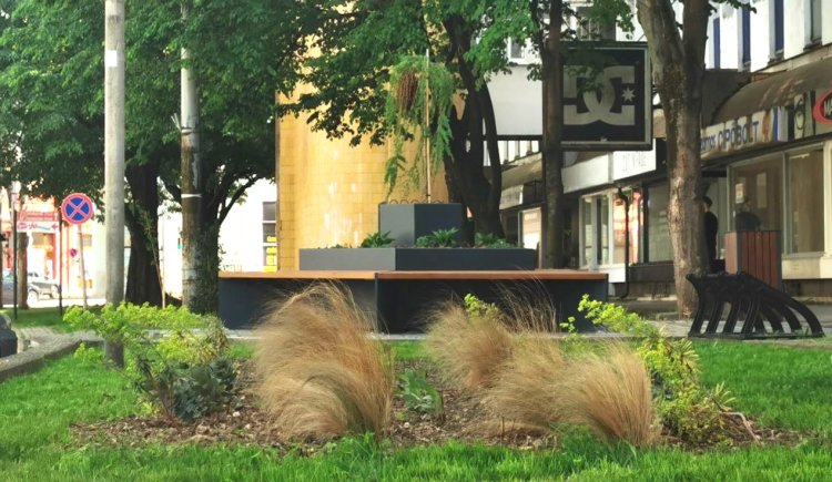 A NYÍRVV Nonprofit Kft. a Zrínyi Ilona utca sávház előtti egyedi, trapéz alakú dézsás körpadot helyezett ki.