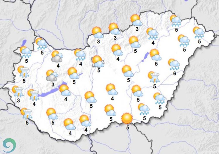 A késő délelőtti, déli óráktól kezdődően elszórtan alakul ki hózápor, zápor, nagyobb eséllyel az északkeleti és délnyugati megyékben zivatar is lehet – írja a met.hu.