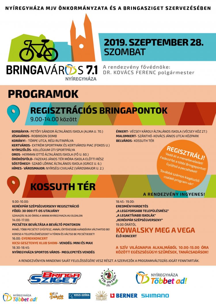 Szeptember 28-án második alkalommal kerül megrendezésre Bringaváros 7.1 elnevezéssel a 11 városrészt és a Kossuth teret összekötő kerékpáros, szabadidős családi sportesemény.