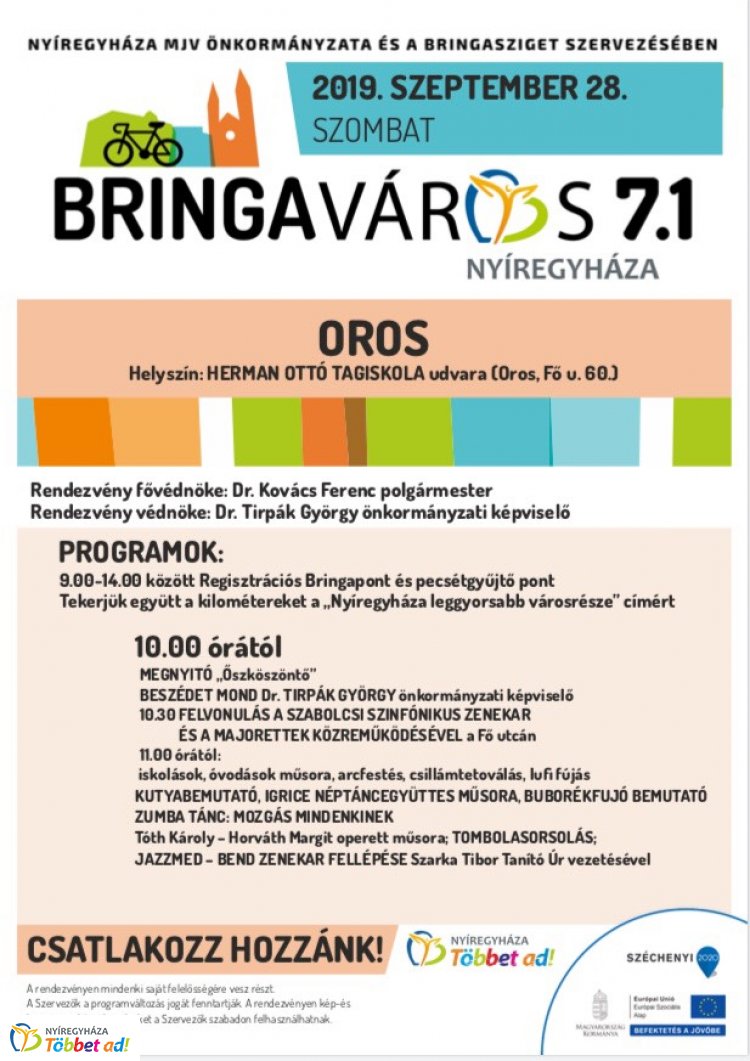 „Nyíregyháza leggyorsabb városrésze" címért tekerhetik a kilométereket az orosiak, szeptember 28-án. Ugyanezen a napon, a Hermann Ottó Általános Iskolában Őszköszöntő rendezvény - egész napos programsorozat - is várja a városrész lakóit.
