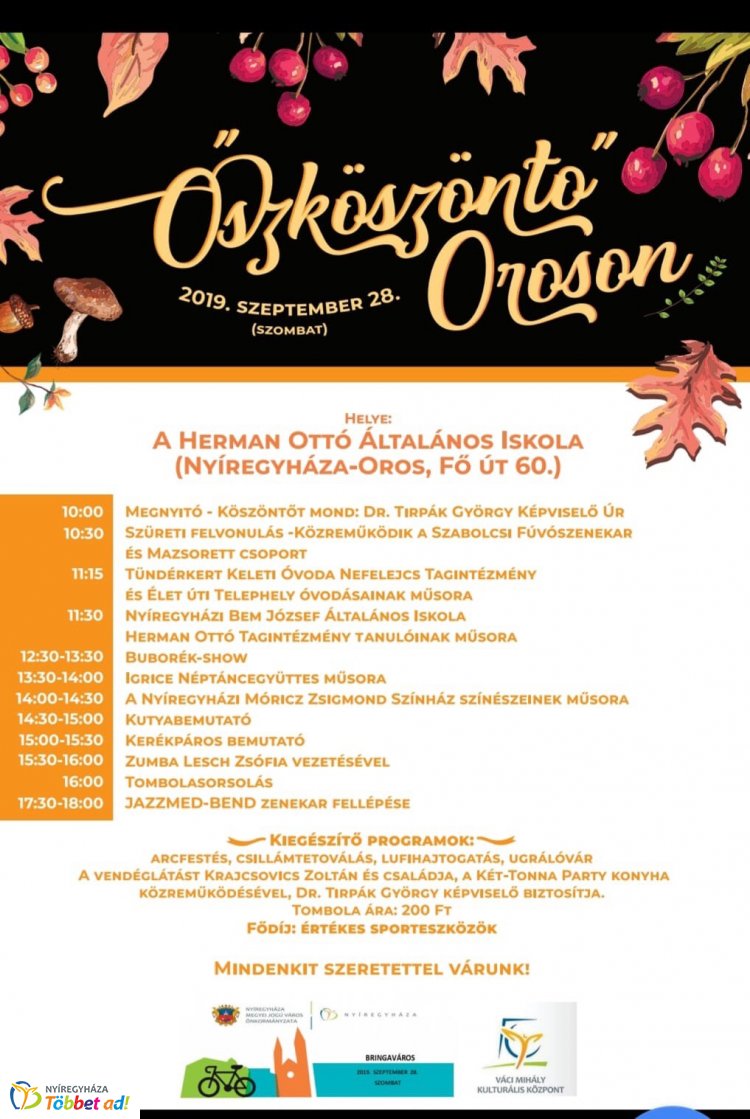 Bringaváros 7.1 és Őszköszöntő rendezvény Oroson, szeptember 28-án