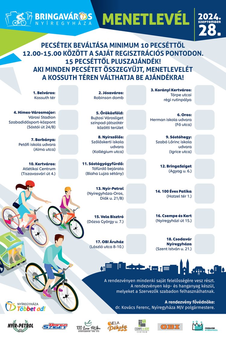 8.30 – 15.00 Pecsétek gyűjtése a megjelölt 18 bringaponton.