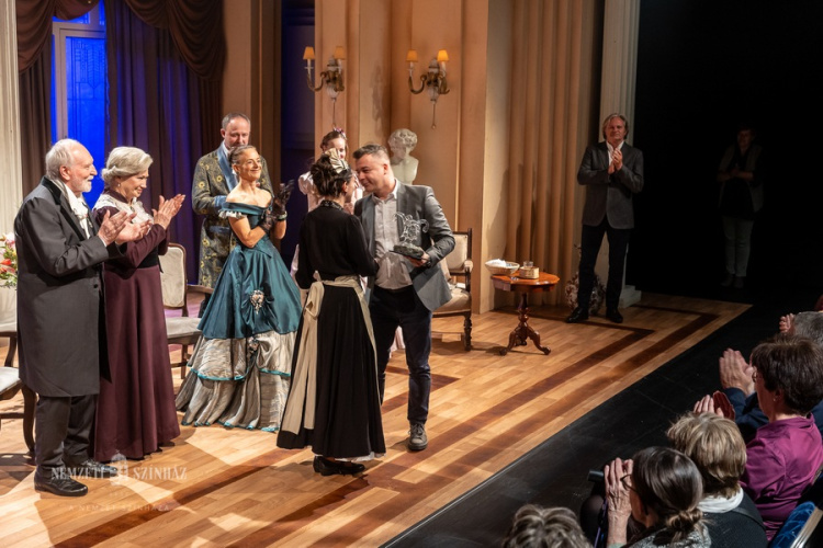 Az elismerést Kirják Róbert, a VIDOR Fesztivált szervező Móricz Zsigmond Színház igazgatója adta át a hétfői előadás után a Nemzeti Színházban.