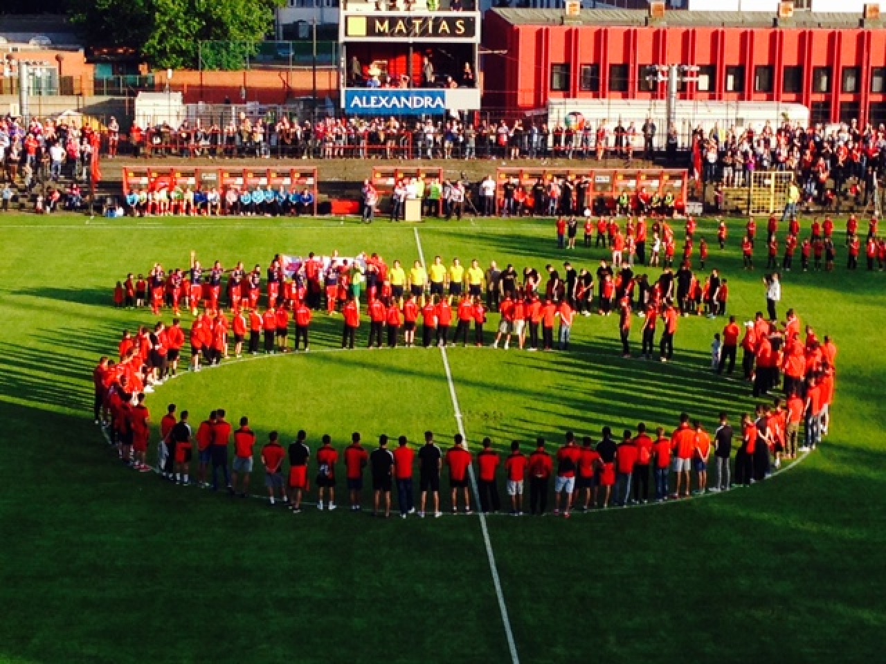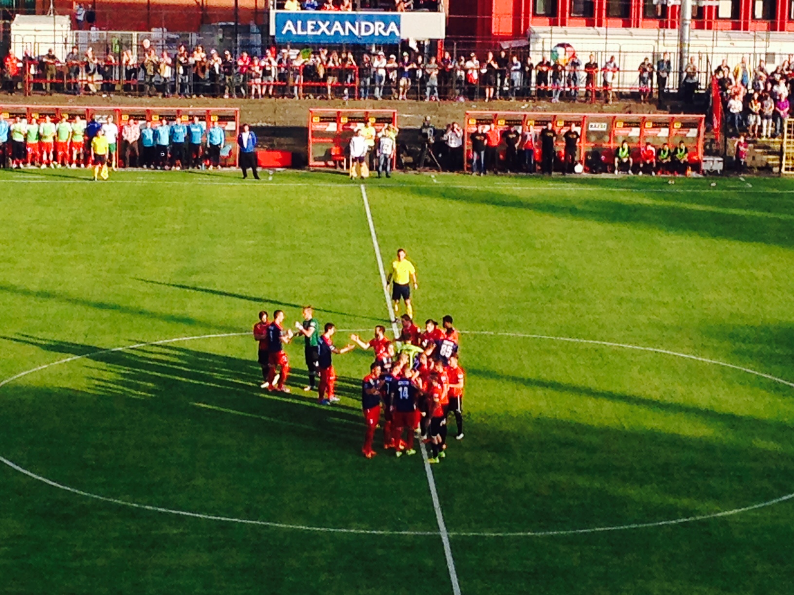 A pécsi utánpótlás labdarúgók búcsújával indult a találkozó, majd a két csapat játékosai ölelték át egymást. Mint ismert, egyik klub sem kapott licencet a következő NB I-es szezonra.