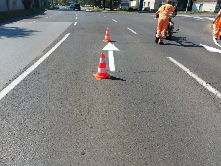 Burkolati jelek festését végezték a Garibaldi utcánál, forgalomkorlátozás mellett.