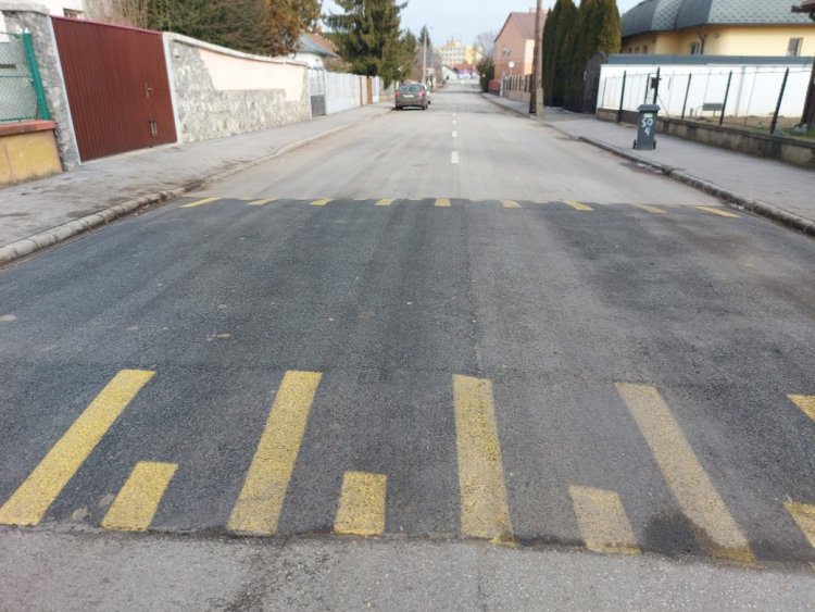 Burkolatjellel is kiegészítették a Simonyi Óbester utcánál a korábban kialakított sebességcsökkentő bordát