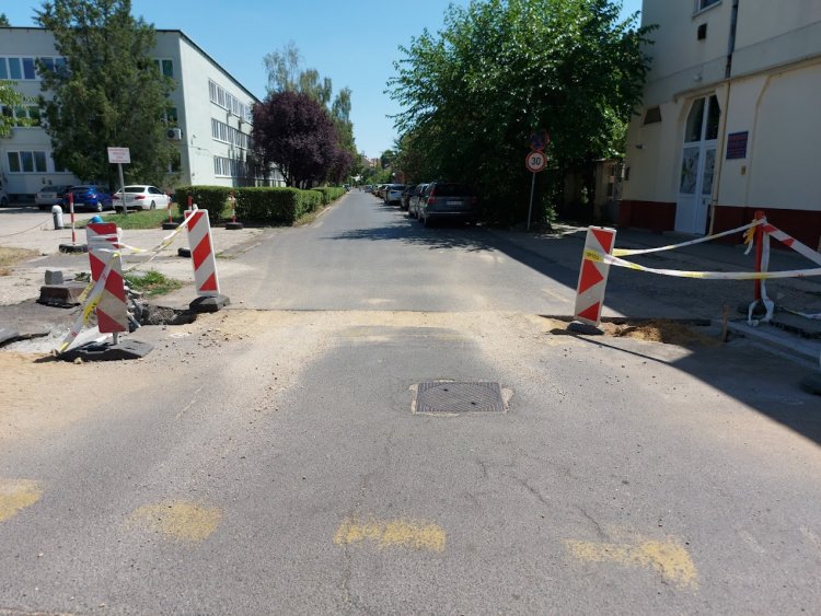 A Széchenyi utca végén, az Árpád utcai csomópontnál le van szűkítve az út, a buszmegállók kialakítása van folyamatban ezen a szakaszon.
