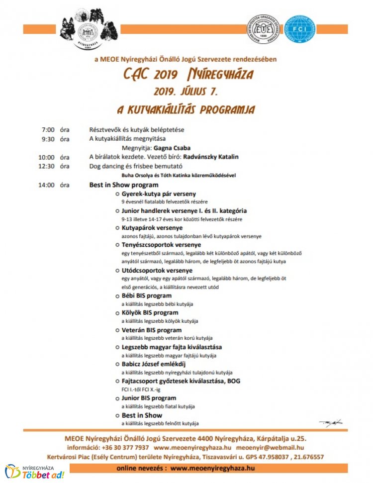 Július 7-én kutyakiállítást rendeznek Nyíregyházán, a Kertvárosi Piacnál. (Részletes program!)
