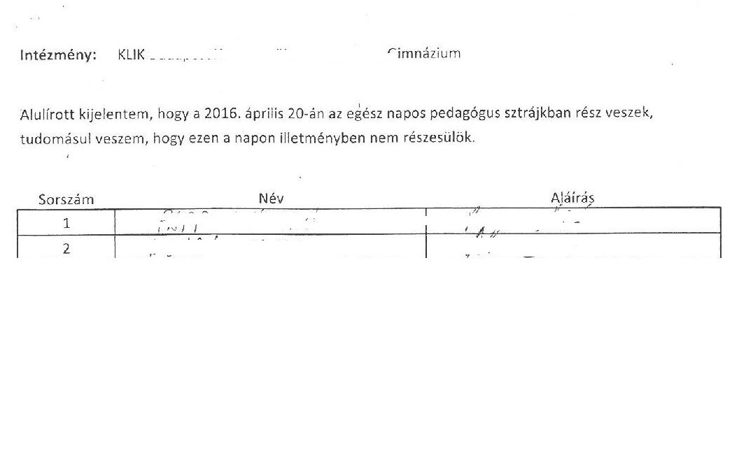 A PDSZ nem állított valótlant, mikor közzétette, hogy KLIK-hez tartozó iskolákban dolgozó pedagógusokkal aláírattak egy, a tankerület által küldött nyilatkozatot az alábbi szöveggel: „Tudomásul veszem, hogy ezen a napon illetményben nem részesülök.” Egy ilyen nyilatkozatot az intézmény és a pedagógusok adatainak kitakarásával csatoltan küldök. A kitakarás nélküli példány a birtokunkban van. E mondatból nem arra lehet következtetni, amelyet a KLIK közleményében ír, nevezetesen, hogy az aznapra eső munkaidőből csak a neveléssel-oktatással lekötött munkaidőre eső illetmény fogja a KLIK levonni. Korábban Rétvári Bence államtitkár is egynapi bér levonásáról beszélt a sajtónak.