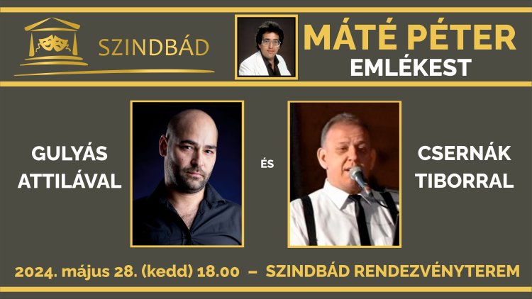 Aki lemaradt a legutóbbi teltházas Bencs Villában előadott emlékestről, ismét részese lehet, ezúttal a Szindbád Rendezvénytermében, 2024. május 28-án, kedden 18 órától. Máté Péter dalaival várja Önöket Gulyás Attila, a Móricz Zsigmond Színház színművésze Csernák Tiborral, aki zongorán is kísér!