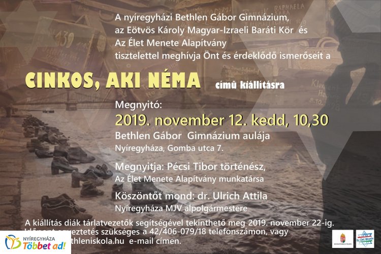 Az Élet Menete Alapítvány 11 tablóból álló összeállítása a holokauszt történetén keresztül mutatja be, hogy a tömegek passzivitása hogyan segíti a szörnyű tettek elkövetõit. A diákoknak szóló üzenet: amikor tettekre van szükség, ne légy csendes szemlélõ! A passzivitás sohasem az áldozatokat segíti, hanem mindig az elkövetõket! A kiállítás megnyitóünnepségét november 12-én tartják.