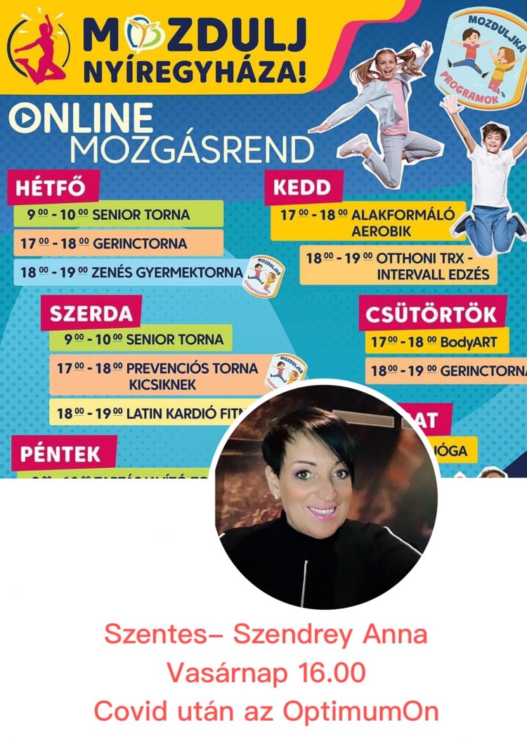 - A Covid után az OptimumOn program nem csak a Covid fertőzésen átesett embereknek, hanem mindenkinek segíthet, aki keresi az ésszerű, tervezett mozgás és életmód felépítés útját. A program eszközigénye SMR henger, SMR kis labda, TRX vagy felfüggesztéses heveder, és az edzések monitorozásához egy pulzusmérő óra, vagy mellkaspánt és applikáció. A résztvevők megtanulják a saját terhelhetőségük biztonságos pulzus zónáját, és elsajátítanak egy olyan rendszert, amiben tartósan javítható a test egészségi állapota, javulhat a testösszetétel, a hajlékonyság, csökkenhet az esetlegesen akár az ülőmunka miatt megrövidült izomzat okozta fájdalmak köre, a test hajlékonyabb, erősebb, gyorsabb, a légzőrendszer , a keringési rendszer felépítettebb, az éjszakai regeneráció jobb lesz. A program egyedülálló, Európában elsőként épült fel a kizárólag sporttudományi pillérekre építkező rendszer – mondta Szentes-Szendrey Anna Mária, a program vezetője.