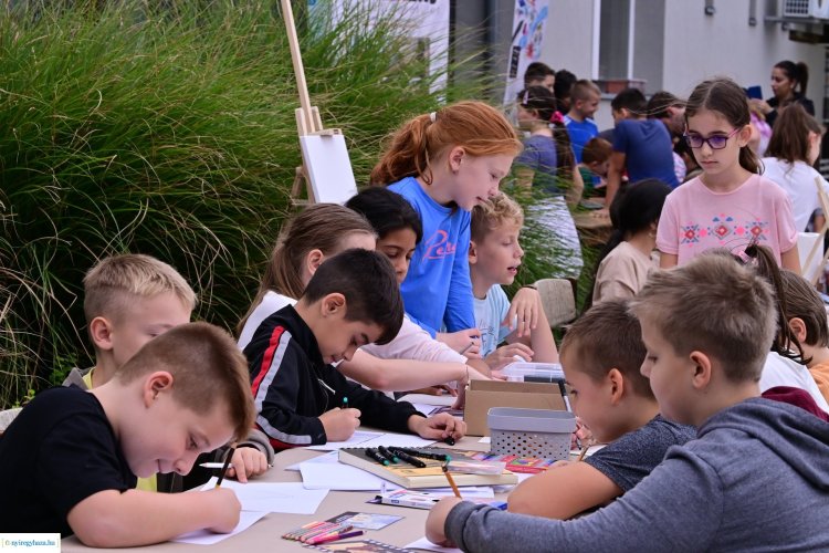 A tánc után pedig a képzőművészetek különböző ágaival ismerkedtek a gyerekek, várta őket többek között Sztojka Viktória festőművész, a téma pedig továbbra is Móricz Zsigmond művei voltak. Vásznat, ecsetet, kiegészítőket kaptak a gyerekek és kezdődött az élményfestés. Ez az aktivitás fejleszti többek között a fiatalok kreativitását, színérzékét és a finommorotikát.