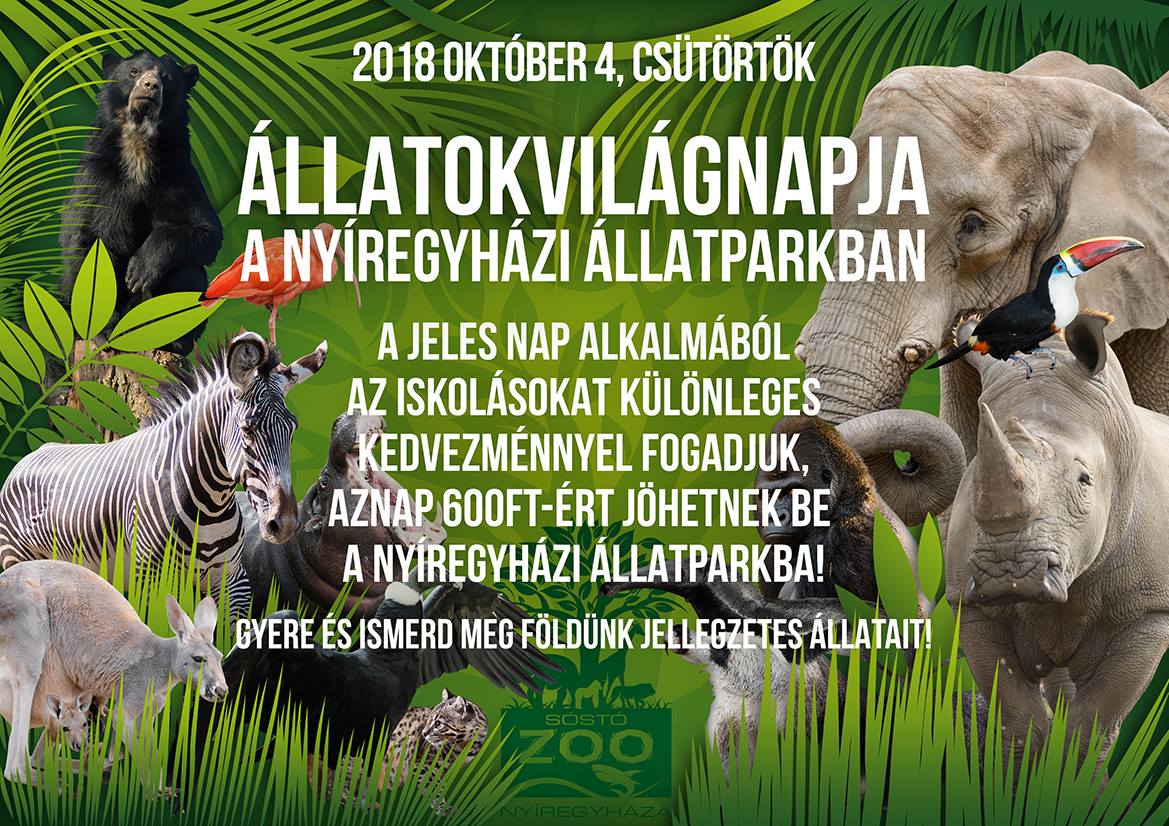2018. október 4-én van az Állatok Világnapja. A Nyíregyházi Állatpark kezdvezményes belépőjeggyel várja az iskolásokat.
