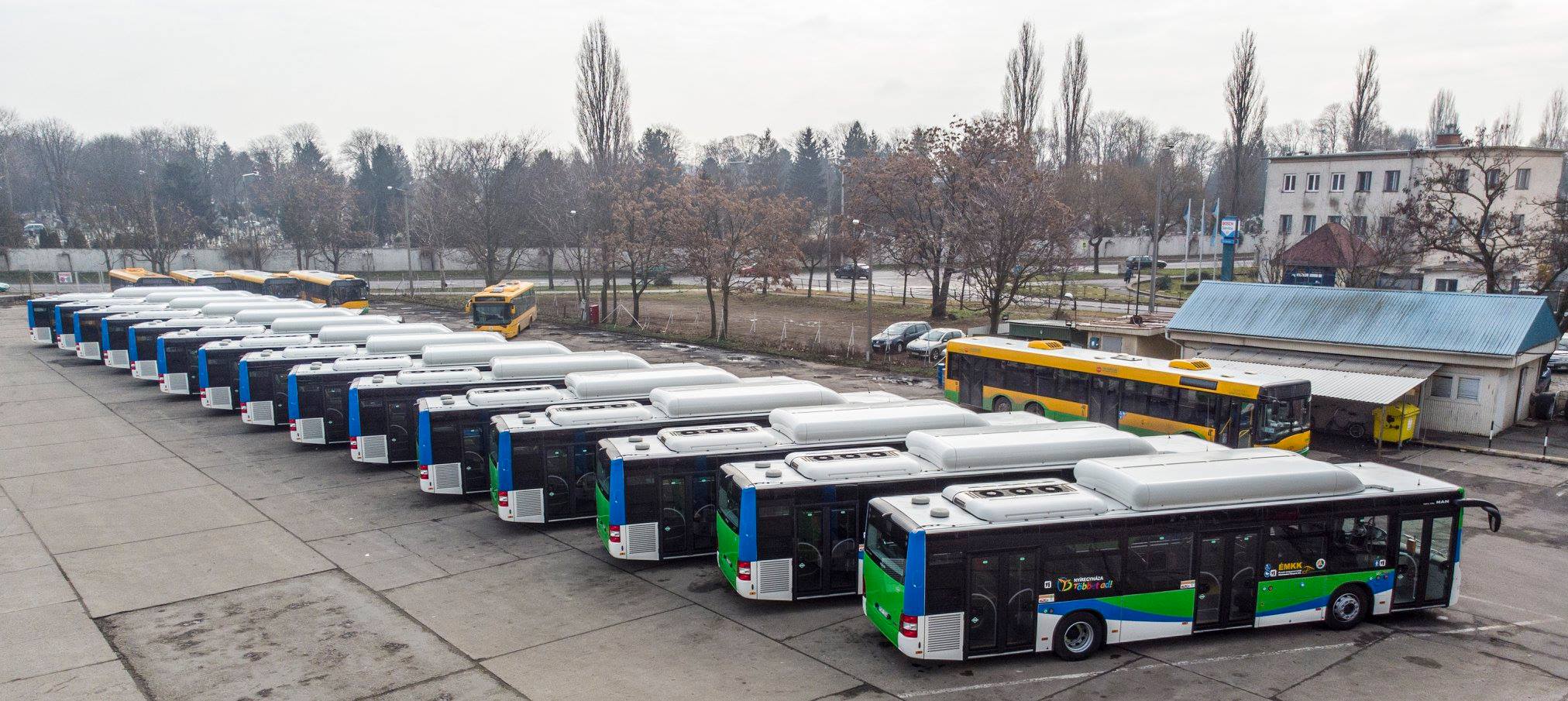 Nyíregyháza MJV Önkormányzata az Integrált Közlekedésfejlesztési Operatív Program keretében nyert 100 százalékos intenzitású támogatással 41 darab sűrített földgázzal üzemelő, úgynevezett CNG-buszt, melyeket most madártávlatból mutatunk meg!